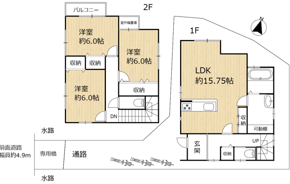 西側 接道約2.0m/幅員約4.9m