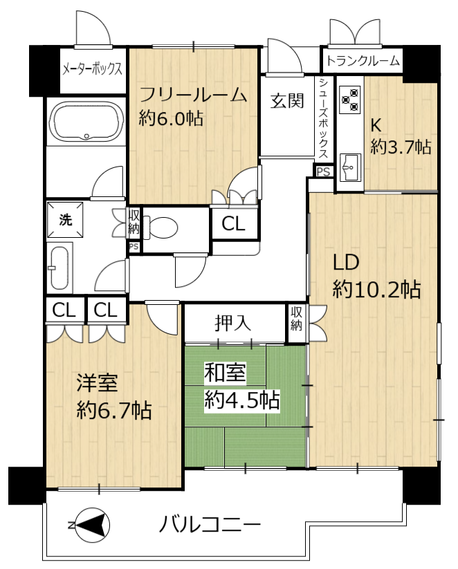🟠専有面積(壁芯)74.77㎡(22.61坪)